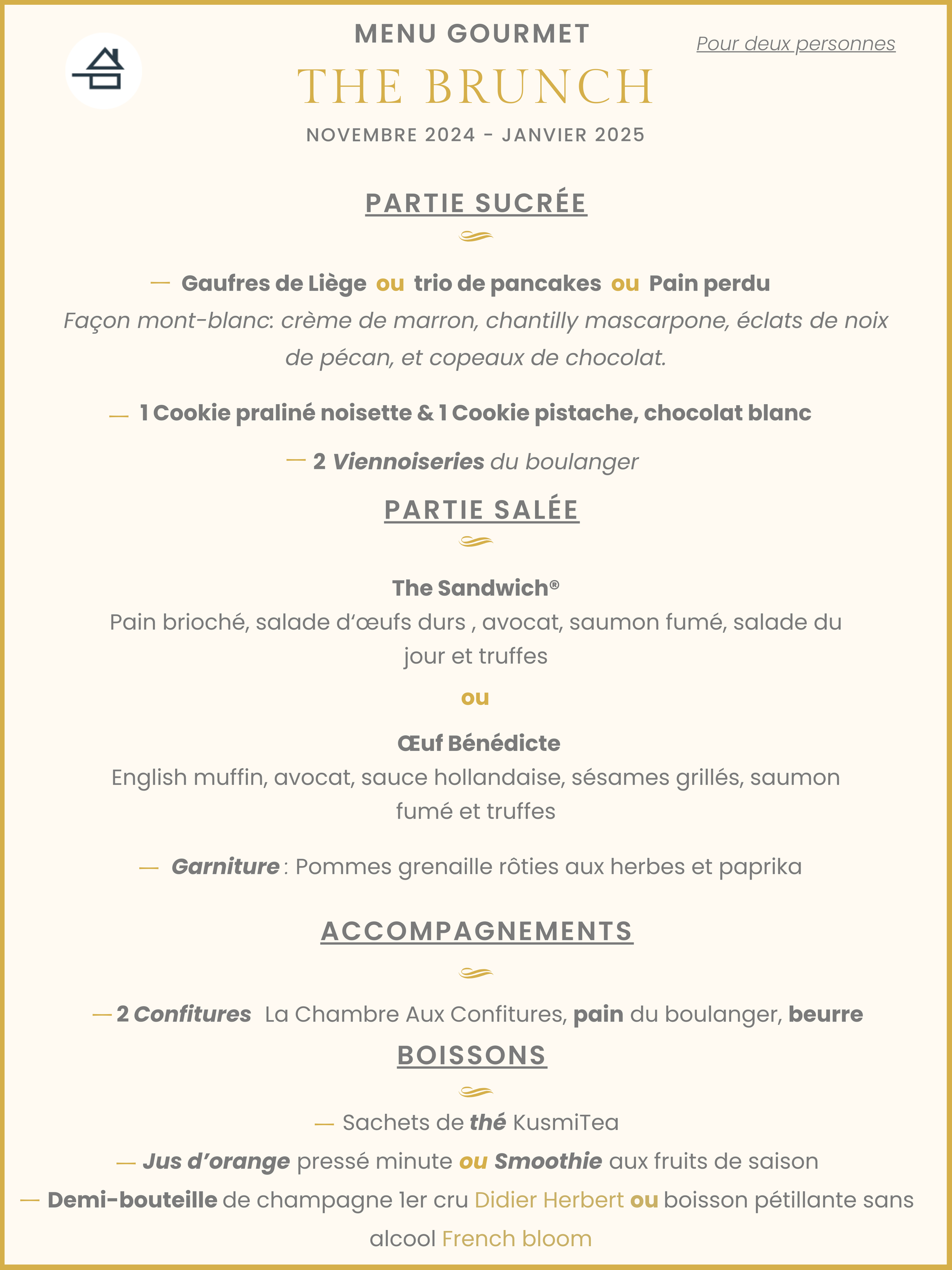Découvrez les iconiques coffrets The Brunch, de véritables écrins renfermant le brunch parfait à déguster chez vous ou en extérieur. Un menu luxueux et délicieux, soigneusement conçu pour une expérience gastronomique inoubliable, spécifiquement adapté à la livraison.